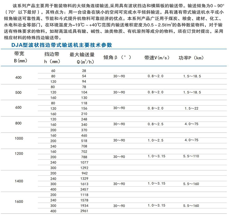 DJA 、DJ type raised edge Angle belt conveyor